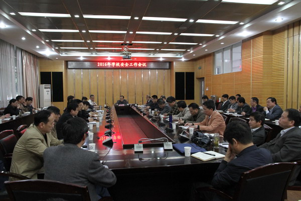 郭永存首先介绍了全国学校安全工作电视电话会议精神,并就如何贯彻落实会议精神,做好学校2016年安全稳定工作提出了要求。一要提高认识。安全是学校的头等大事,要将安全工作摆在更加突出的重要位置,安全工作要做到“小题大做”,警钟长鸣,把各项工作都要做实做细。二要正确认识校区搬迁和新老校区过渡期间学校面临的安全形势。我校三校区、四地办学以及新老校区过渡的不确定性形成了安全形势的特定环境,对开展系列活动都要有安全预案,有防范措施,确保活动安全;要改变工作作风,畅通“言路心路”,对师生提出的问题要主动面对,及时妥善解决。三要强化安全责任制,进一步压实责任。各单位要适应新形势,适应严要求,强化问责、追责,狠抓安全工作的落实。四要完善安全管理制度,提高安全管理水平。完善各项安全制度,明确安全措施,加强隐患排查,建立台帐,逐一销号,早发现早整治,杜绝安全事故发生,真正把安全管理工作做好。