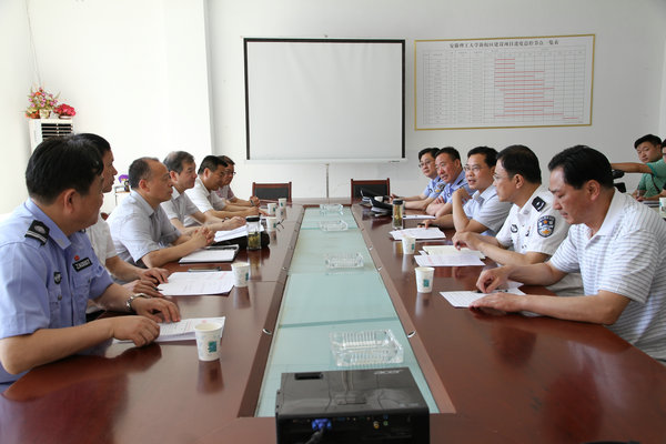 校保卫处负责人方运纪就新校区搬迁和学生入住周边存在的安全隐患整治、校门前通道及交通设施设置、校区综合功能警务站建设及民警和装备配备等作了汇报。