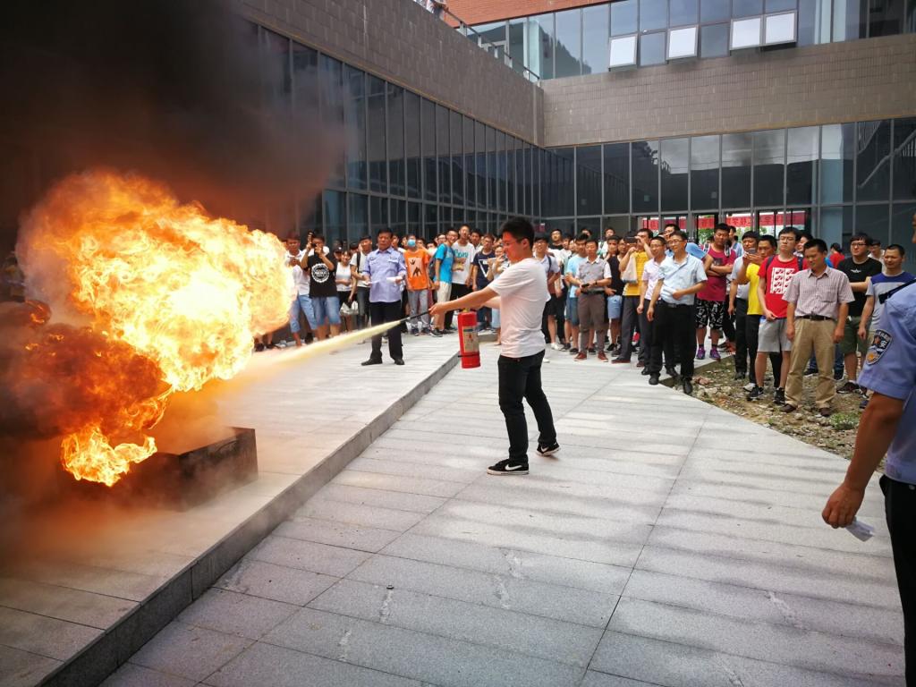 讲解结束后,卢传江、彭广峰老师指导师生进行了实地灭火演练,让师生亲自参与灭火演练。随后,师生们进行了紧急疏散演练。随着报警声的响起,师生依次按照疏散路线,有序地弯下身体,快步到达安全地点,整个演练活动紧张有序。