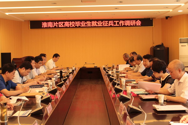 6月21日下午,省教育厅副厅长解平在舜耕苑西配楼二楼会议室主持召开了淮南片区高校毕业生就业征兵工作调研会。省大中专毕业生就业指导中心副主任(主持工作)袁江林、教育厅有关部门人员,淮南片区5所高校分管校领导和相关职能部门负责人参加了会议。校党委书记郭永存看望了教育厅和参会在淮高校领导。