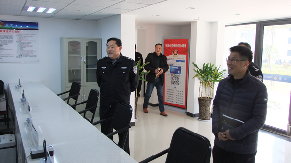 会后,平勇一行实地调研了我校24小时总值班室、校园微型消防站和校园综合警务站。