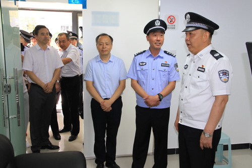 郭永存对李建中一行来校调研指导表示欢迎,对省、市公安机关多年来对我校安全稳定工作给予的支持表示感谢。他简要介绍了学校基本情况,重点就校园综合警务站的主要服务功能、警务站在校园安防中发挥的主要作用以及我校在安全稳定工作方面的积极举措作了介绍。他表示,学校将继续加强警务站建设工作,大力支持和全面深化警校安全防范联动机制建设,加强与公安机关的沟通,进一步深化服务学校发展、方便师生办事的相关举措,总结好警校共建成功经验,构建更加完善的警校联动和警务站运行机制,不断加强师生安全教育和治安管理,大力推进平安和谐校园建设。