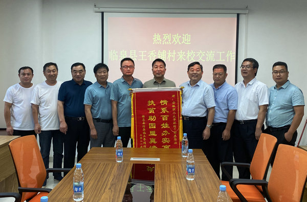 6月25日,阜阳市临泉县王香铺村书记、村长一行6人向校帮扶干部秦淮滨同志送来一面印有“情系百姓办实事,扶贫助困显真情”的锦旗,代表村“两委”及村民向学校及秦淮滨同志对该村的精准帮扶工作表示真诚感谢。保卫处负责人热情接待,双方进行了交流座谈。