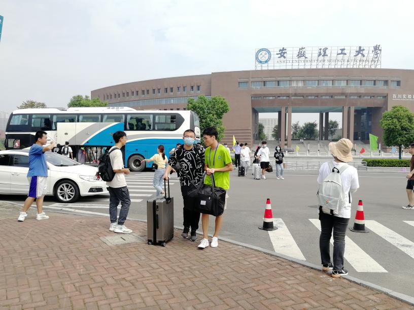 9月9日-10日,淮南公安多警种近百名人民警察、交通综合执法支队交管工作人员在百川门和明理门全路段顶着烈日指挥、疏通道路,保障了交通畅通和安全。山南分局长、纪委书记、市治安支队长等靠前指挥并亲自为新生搬运行李。