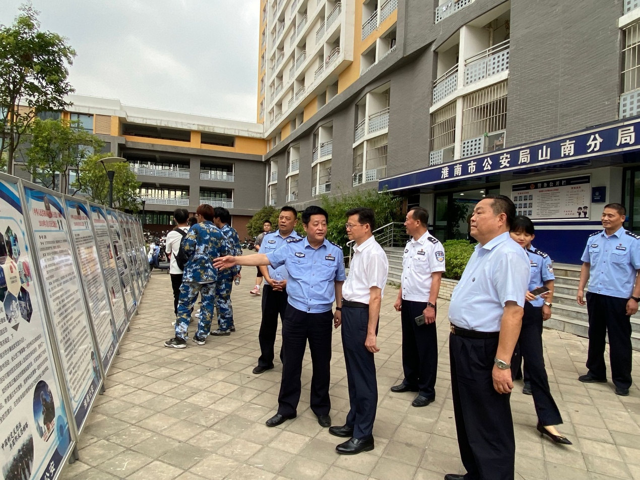淮南市公安局副局长缪全,山南公安分局局长马义美,公安机关相关部门负责人,保卫处副处长刘训强、赵斌参加检查。