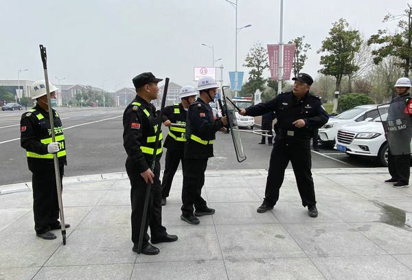 理论固本,实操强基。演练前期,春晓街派出所副所长王旭对保卫处及全体安保人员开展反恐防暴安全培训。以现场模拟演示的方式,详细讲解了防暴盾牌、防暴钢叉、抓捕器等安保器材使用方法及应对持刀歹徒的控制技巧。