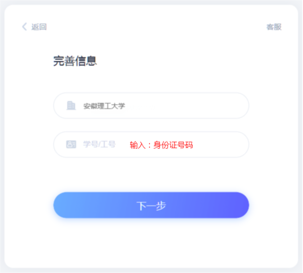 3.“学校/单位”处填写“安徽理工大学安全教育”,并填写好身份证号码及姓名。