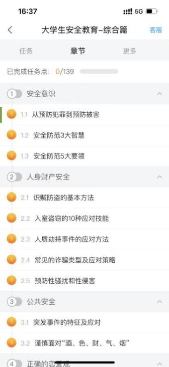 2.进入课程后,可查看章节列表的知识点,任务点为必须完成的学习内容!