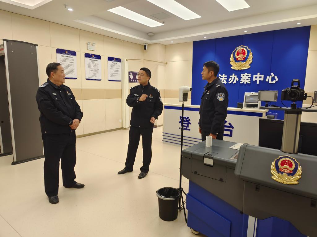 方运纪一行参观了春晓街派出所先进的执法办案中心、案件审理中心、司法鉴定中心、特色技侦工作室等场所。