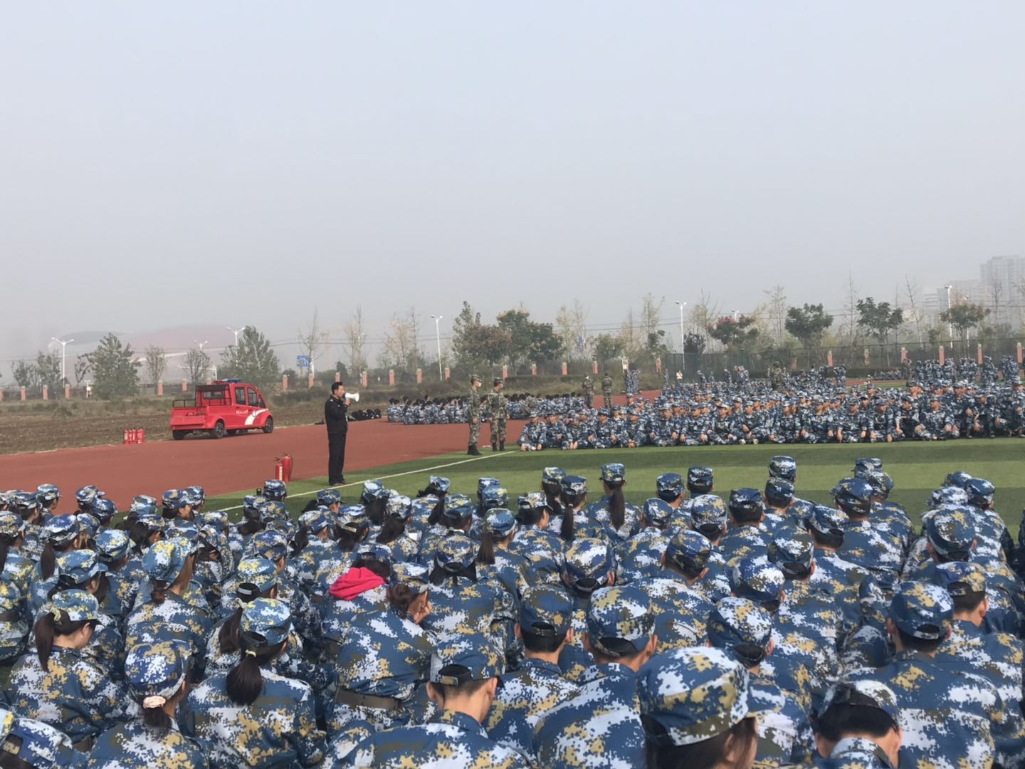 为提高我校学生消防安全意识,提升应对火灾时扑救和逃生技能,10月17日上午,学校分别在至诚和仁爱体育场,对2020级7000余名参训新生开展消防基础知识培训和灭火演练活动。