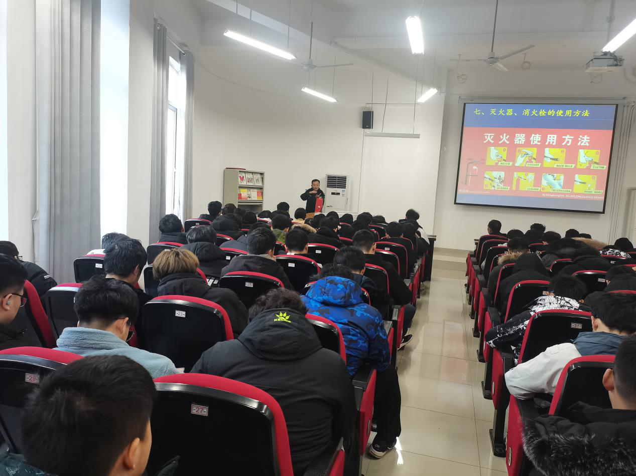 12月31日,应化工学院邀请,校保卫处消防科彭广峰老师在崇礼楼东102作消防安全知识培训。培训会由学院党委副书记黄晟主持,学院120余名师生参加培训。