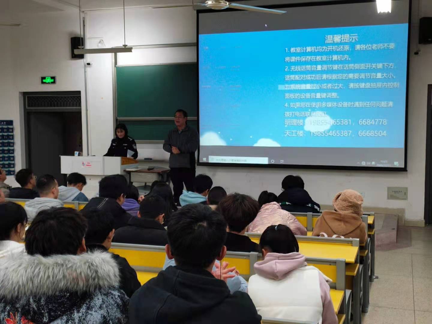 12月11日,保卫处以“知危险、会避险——绿色出行、文明交通、从我做起”为主题,邀请淮南市交警支队山南公巡大队宣传科花芹芹警官,在明理楼202教室开展交通安全讲座,讲座由保卫处副处长孙东升主持,地球与环境学院、安全科学与工程学院、矿业工程学院等300名学生参加了本次宣讲教育。